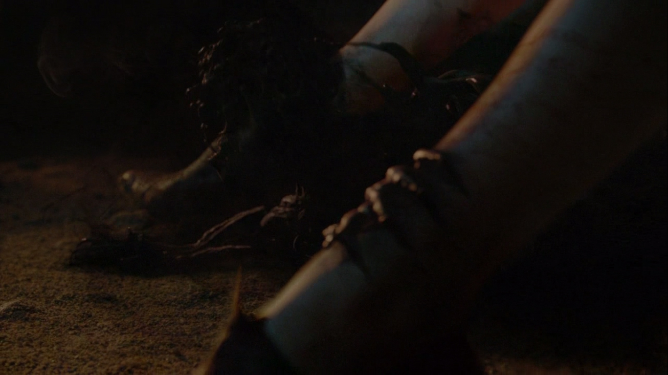 I would imagine it’s Storm’s End simply because I’ve read the novels and know the context of how Davos talks. He mentions ‘these bars weren’t here before’ in context to he’s smuggled into Storm’s End before. The Red Woman begins to talk in riddles and metaphors that sets the traditional Davos uneasy. Next thing you know, she unrobes herself to be fully pregnant. One can only imagine how she got pregnant as we saw her make ‘love’ to Stannis a couple of episodes ago. She gives birth right on the spot, but not to a child. We see some sort of shade crawl out from her. The pregnancy itself is very graphic, showing most of what might be seen during an actual pregnancy. Now I’ve read this part in the book and fully knew what was going to happen, but I was still holding my hand across my mouth in awe from the sheer explicitness of the scene. I would imagine it would take a while of settling in before the audience could possibly think what the purpose of the shadow was. I’ll let you all speculate down below in the comments.