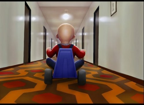 This is a really cool mashup of a very serious movie and one of the kiddiest movies out there. The Toy Shining combines Pixar’s Toy Story and Stanley Kubrick’s The Shining. Artist Kyle Lambert came up with this visionary combination. I’ve picked some of my favorites here. Go visit the rest at Huffington Post.