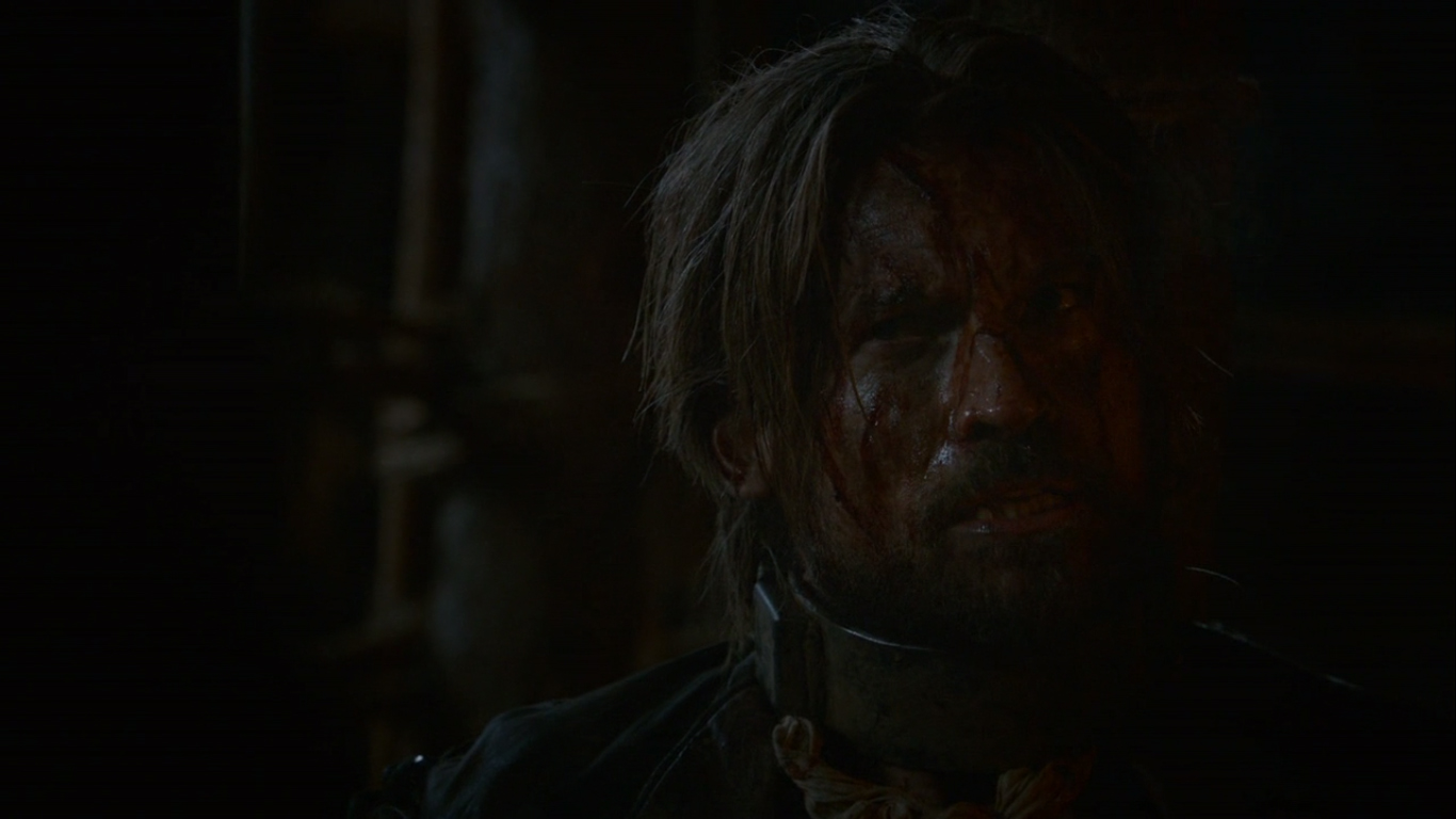 Everything that was excellent about this episode occurred because of this man right here. He stole the show last night with his extended scenes and heavy dialogue. I like to think beforehand that his character was nothing more than a incestous snobby pretty guy, but his heavy character development in this episode really drove home what I’ve learned about him from reading the books. We’re given a pretty decent look into his approach to life and why the way he is. We’re shown his tenacity to live by killing his own distant cousin for a chance to escape. We’re shown his fearlessness of death when he’s almost killed by soldiers and shrugs it off with a joke. We’re finally given his sense of philosophy as he points out the hypocrisy in all men. His monologue on rules and vows and how one can hardly do anything without breaking a vow with his example on, “respect thy father, respect thy king, what do you do when your father despises the king”, etc. This moment really showed me that there is more to this man than just what we’ve seen so far, and having read the books, I know I’m not wrong [lol]. And of course, his japes and jests about Brienne and her size and sexuality were also a delight to hear. It’s too bad that Catelyn Stark pulled a sword on him….