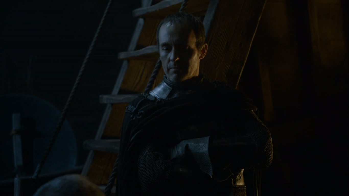 Right before the battle, Stannis names Davos Seaworthy, a commoner turned knight, to be Hand of the King when Stannis claims the throne. Stannis makes some good points here, saying he did his duty for his brother and expected gratitude. When he was instead looked over, he accepted his orders and moved on, despite being wronged. I never had much sympathy for Stannis, but this particular scene makes me think it shows his character as how morally iron he is.