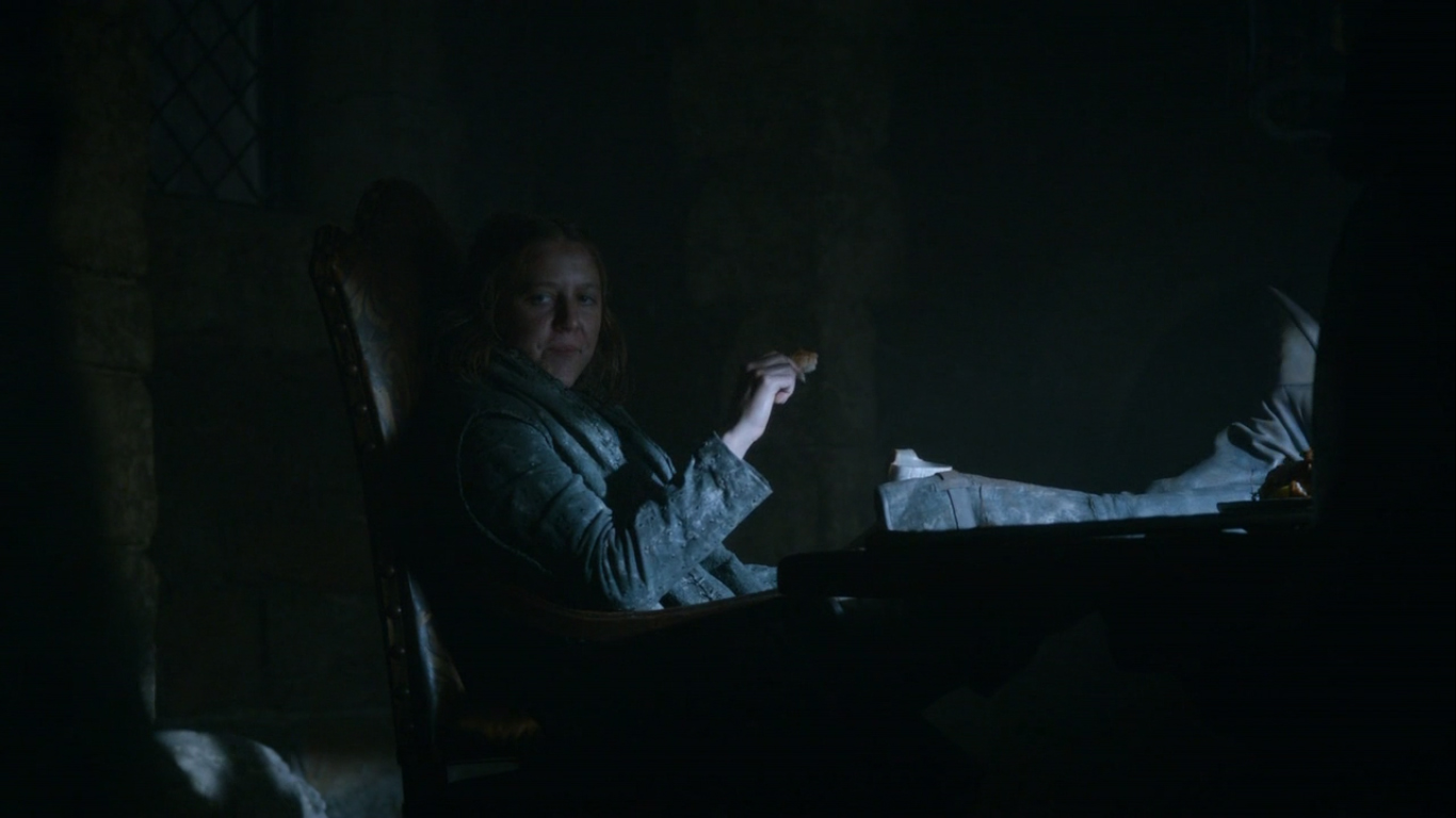 Theon’s a pretty insecure dude. He tries to do good, but he gets caught up in his own idiocy so much, that he’s doing more harm than good. Example 1) Take Winterfell to impress father. Backlash 1) Garners no reinforcements from his sister because of lack of planning. Example 2) Stay in Winterfell to show courage and valor. Backlash 2) Will likely die. The man is caught in a serious battle with himself and his losing grip of Winterfell will make him lose much more than the respect of his father.