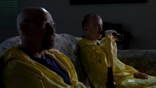 Of course after making a couple of dozen of pounds of Meth, the first thing you do is crack open a few beers and watch The Three Stooges. It was really nice having this talking time with Walt and Jessie. The past season or two, they’ve been held up against their will, threatened, nearly killed, and now they can finally relax with a beer as they slowly make their way back to the top of the world. The conversation that ensued was also very interesting to to hear. Walt was seemingly concerned with Jessie’s lady friend and how much she knew about the business they were into. He sprinkles in a little of ‘Love’, ‘what makes you happy’, and ‘what it’s all really about’, and Jessie eats it up as though Walt really cares. I ate it up too until towards the end of the episode [which I’ll explain later].
