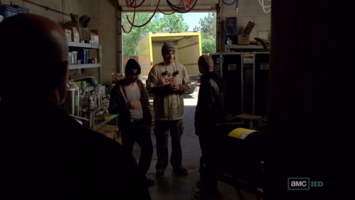 When Saul locks down the crew to provide the cover, the team begins to bring in the equipment. We see Jessie’s two hotheaded friends once more as they help secure some of the shipping mediums to bring in the equipment. While it’s good to see these fools again [boy can that boy play piano], it’s not long until Mike scares them off. Mike is rightly suspicious of them because Jessie’s friends know he’s big time and I think he sees them as a liability. Rightfully so…this might not be the last time we see these fellas. In the final act of the planning, Jessie proves his worth and intellect by suggesting several ways in how they’ll successfully transfer and operate the lab. He continues with his plan until his lady friend and her kid walk into the room…The look on Walt’s face is priceless which brings me to…