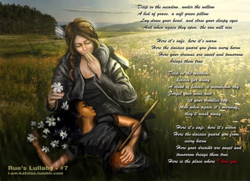 I’m still reeling over the death of quite possibly my favorite character in the book, Rue. I don’t doubt that I join millions of others who claim the same thing. I’ve pictured most of the tributes to e around the age of 16-18, teenagers who’ve grown up considerably, but the idea of a 12 year old playing these games was fairly tough to deal with already. Then as we got to know her, my heart melted at the poor girl who was described like a child. And then she was gone. After reading relatively quickly through the entire book so far, I stopped and slowed down as I read how Katniss spent her final hours with her. Soaking in every emotion, I couldn’t help but go through the same sadness and anger Katniss went through. Those Careers were as good as dead.
