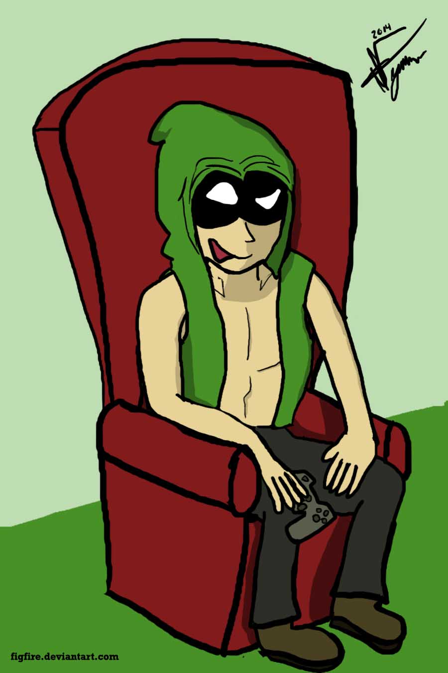 The Avatar revamps continue. While Bruce just got an upgrade in animal species, SoGoCJE requested a complete revamp. From hooded gamer to robot, I rather liked this change. Primarily because he allowed me to try some really cool things with glowing lights. I had a lot of fun drawing this one. Below is a picture of an older version of him.