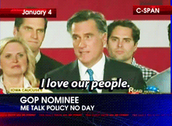 I’m not huge into politics. And now that it’s a major election year, being into politics is a really big deal. I hate that I have to choose from such crazy partisans and that who I do have an opinion for, there are people who exist solely to blast my opinion out of the water with a bombardment of condescending facts that they likely heard once when they flipped through the Fox channel. Regardless, whenever politics are mashed up with pop culture, I tend to have a stronger love for such things. Today I compiled a neat gallery of .gifs that compare 2012 Republican Nominee Mitt Romney and Channel 4 Newscaster Brick Tamland. Political hilarity ensues.