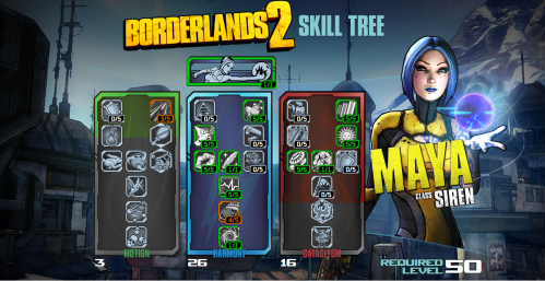 There’s only one build that I recommend for Maya, but that’s only because I enjoy her as a multiplayer character. Overall I feel like she does sub-par in a single player environment, but shines above all with her revive ability in a multiplayer game. I’m not quite sure how hard she hits as I don’t really like her passive abilities too much. To be completely honest, I dreaded doing this character guide since I started because I honestly didn’t really like Maya’s role in general. After getting to play with her for a while, however, I’ve found that she’s incredibly fun to use in the right circumstances (mainly in multiplayer with lots of other targets to keep the enemies away from you). I like to focus primarily on the Harmony tree for obvious reasons when playing with friends. It helps keep both you, and your allies alive. Additionally, the extra slag from the final skill is never a bad thing. I like to go straight down cataclysm next in order to at least buffer my DPS with elemental weapons. Of importance here is the hellfire (which is still an amazing gun despite being compared to its predecessor from the original Borderlands). Overall this is really the only build I’ve played around with, but I’ve had immense amounts of fun doing it. There are more DPS oriented builds out there that focus more on Cataclysm or Motion, but they aren’t as fun to me, nor as gratifying as seeing my friend be lifted up his feet from across the map thanks to my res.