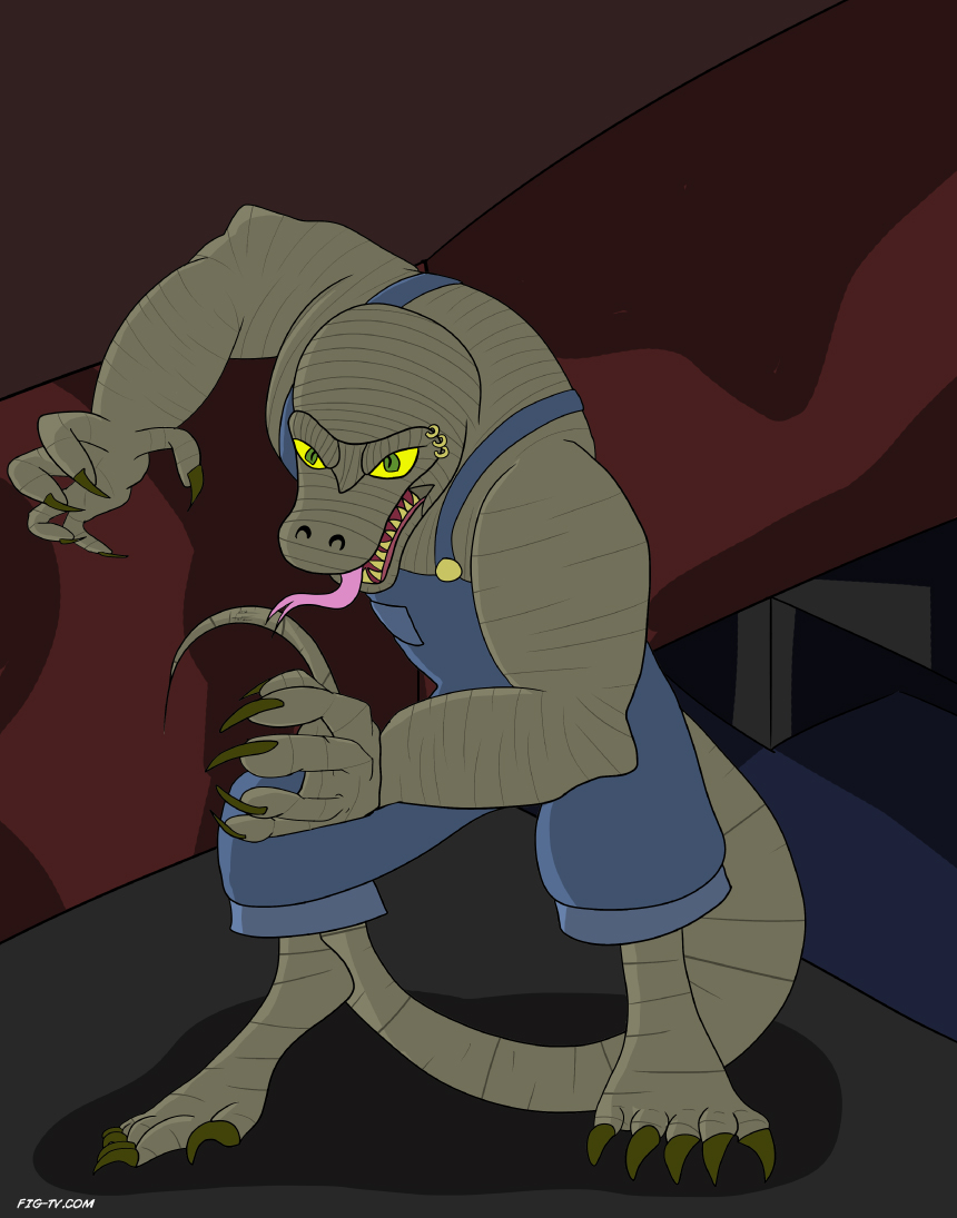 Zaspara is a giant lizard from a near-extinct clan of hyper intelligent reptile beings. Zaspara grew up as a runt of a clutch and was outcasted hours before his clan was wiped out. Zaspara managed to survive on his own, scratching a living in dark caves and secluded areas over long periods of times. He stumbled upon an orphanage of children whom he took into his protection when there were being hunted. The pursuers were relentless and Zaspara fought his way to his near death protecting them, only to still lose them by the end of it. The hunters took Zaspara alive, parading him around as a freak of nature for money. He was rescued by Old Ben Reily, owner of the Black Carnival, and has since then served as a protector of the younger employees and attendees of the Black Carnival.