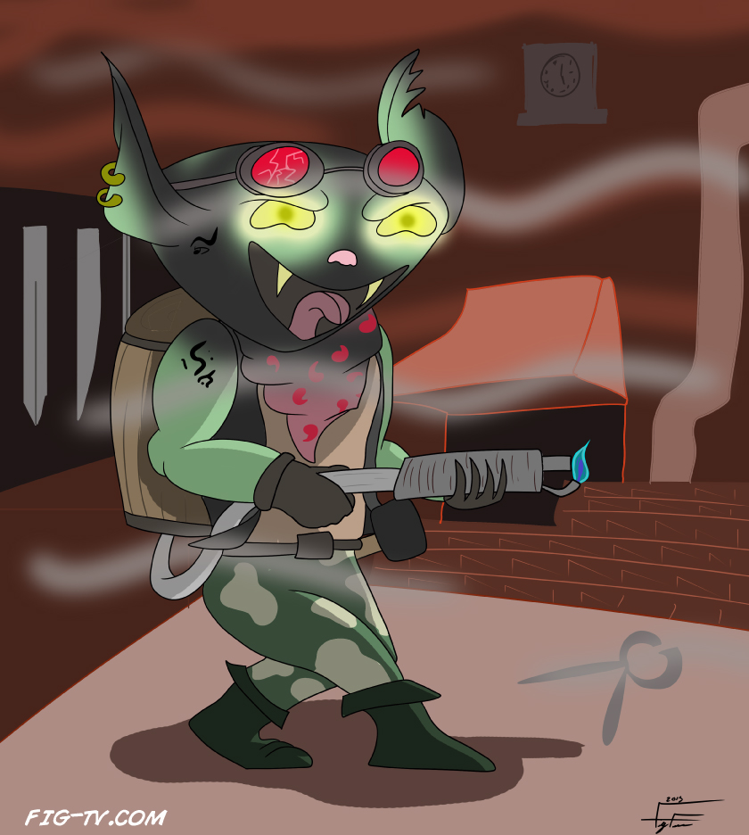 Miko was a goblin orphan left behind during a dwarven raid in a goblin camp. Too young and innocent, he was taken pity on by the dwarven lords and raised amongst his species’s mortal enemy. As Miko grew, his innate tendency for mischief and mayhem caused trouble in the great dwarven city, though was pardoned when Miko showed great potential for metallurgy and forgemanship. He built great and terrible war machines for the dwarven cause, unknowngst to him what they were to be used for. When he pulled a particularly cruel prank on a fellow blacksmith, he was told irony and betrayal that he has caused his own people, sending Miko in a downward spiral of depression. When he refused to continue to work for the dwarven lords, he was imprisoned and used a propaganda tool to enrage and demoralize the goblin forces. The war raged on for many more months until a treaty was signed. The goblin forces demanded the release of Miko and the dwarves declined, continuing the bickering as Miko himself rotted in a cell. They settled on the idea that neither side should be able to use the genius goblin, so they outcasted him to the overworld, where Miko would be lucky to survive a week in this new world. As if on queue, a representative from the Black Carnival arrived and took him to the grounds where his fate was decided to work at the local forge for housing and food. He was skeptical at first with working at the forge again, his only condition was that he never make weapons ever again, but he somehow knew everything would be okay when Old Ben Reily arrived to visit the forge. As Old Ben passed by, he asked a meek Miko what was on his shirt and as he looked down, Old Ben’s finger flipped up his nose. Old Ben gave Miko a wink, and proceeded to continue to create brilliant craftsmanship at the Black Carnival forge.