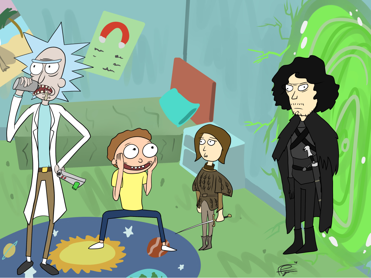 A drawing I did for a friend. I caught up on Rick and Morty earlier this spring in response to the hype for season 2 coming later this July. He mentioned that a cross over between Game of Thrones and Rick and Morty might be cool. I thought it would be cool as well.