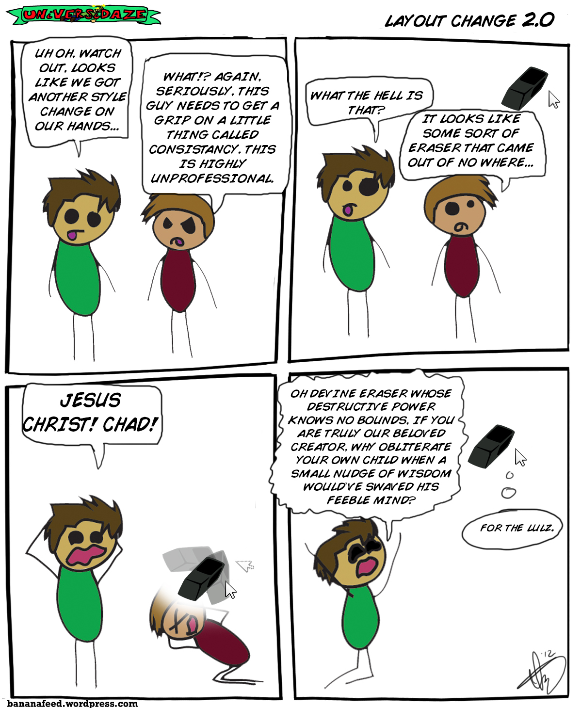 Pow! Universidaze is back. With more Chad’s grossness and Mile’s palmfaces. Read more of it here!