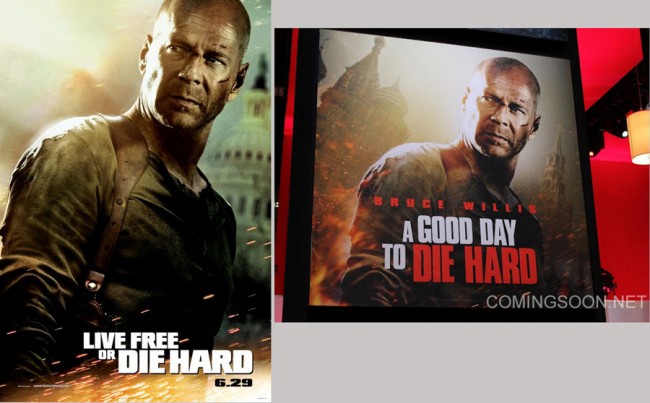 It’s been confirmed that Bruce Willis has signed on for another Die Hard movie, titled ‘A Good Day to Die Hard’. The thing is, their marketing campaign is something we’ve already seen. One of the first posters released for the upcoming movie has something very similar about it…Oh wait, it’s the same exact poster. Hit the jump to Filmdrunk to see their take on the matter.