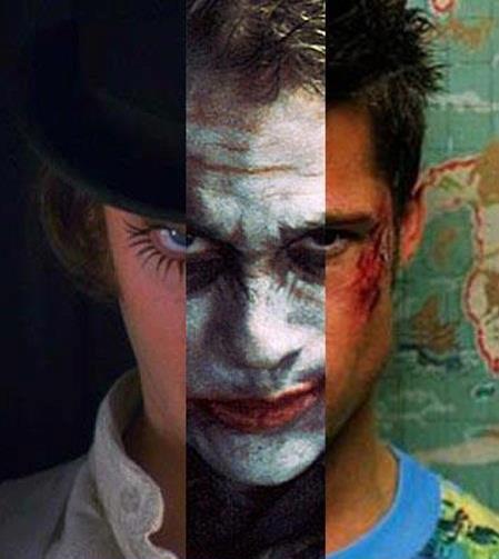 This is very similar to the Johnny Depp image I posted a week or two ago where his face is meshed into different roles.  What he have here is something slightly different, where we combine three of the most significant movie villains into one image.  It seems these three unforgettable characters all pose in the same, ‘I’ll rip out your own intestines and feed it to you’ type of death stare.  Regardless, maybe it’s more than enough reason to persuade you to watch all three of these movies again.  [For those who don’t know: it’s Alex DeLarge from A Clockwork Orange, The Joker from The Dark Knight, and Tyler Durden from Fight Club].  May these psychos find each other soon and plot to dominate the world.